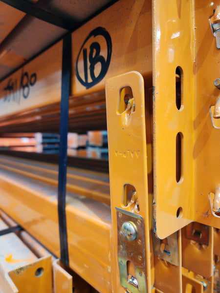 Alpha box beams are compatible with Dexion pallet racking setups. Can be used for heavy-duty shelving